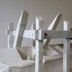 Ma rencontre avec le monde des carrières – carrières de Carrare et d’Arni en Toscane, de Rapolano en Ombrie, puis de Suilly-la-Tour en Puisaye – précisa cette question de la relation à l’invisible sous la forme de l’évidement et de l’inaccessible épaisseur. Elle est à l’origine des réalisations en pierre de la série Travail au fil, mais aussi du principe Sombre Propos, et sujet du film Le double voyage, réalisé en collaboration avec Hélène Châtelain. La série des Barques de pierre qui apparaissent dans ce film à été sculptée à partir de fragments et galets trouvés dans le lit de la rivière coulant au pied de la carrière du Monte Altissimo, à Seravezza.