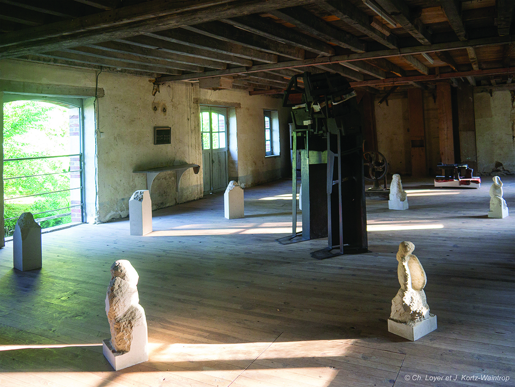 En réponse au thème proposé utopie/dystopie pour le Festival « Cactus Calamité » de l’association La Turbine-Pertrin, l’exposition UTOPIA DYSTOPIA des sculpteurs et plasticiens Janine Kortz-Waintrop, Bernard Thimmonier, Christophe Loyer et François Righi s’articule en deux espaces : l’un, au rez de chaussée, est obscur, et l’autre, au premier étage, est lumineux. Ombre et lumière ici pourtant n’ont pas vocation à qualifier la dystopie d’un coté, et l’utopie de l’autre car, comme chacun sait, si utopie et dystopie semblent opposés, ils peuvent être aussi synonymes… Ainsi la plupart des œuvres présentées jouent sur cette ambiguïté : promesse ou menace, blasphème et ferveur, obscurité dans la lumière, ou lumière dans l’obscurité. A quoi s’ajoute leur dialogue avec l’attachante ambivalence du lieu lui-même, ce vieux moulin et sa turbine rouillée, son histoire oubliée, ses murs fissurés, et l’eau qui murmure ou rugit en passant sous ses voûtes.