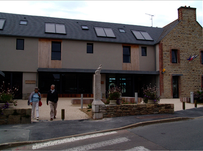 2011- Médiathèque de Trévou-Tréguignec, 22660 : 1% artistique, «Parsi lisant», pierre de Puisaye, H=210cm.