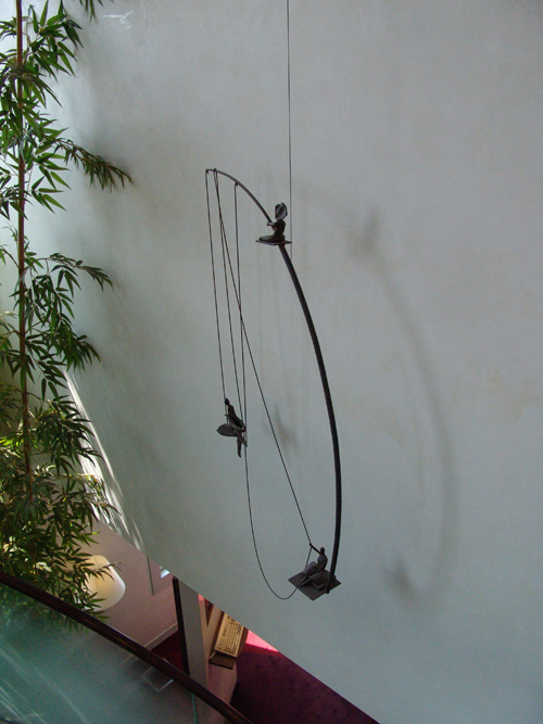 2007- Siège de la ERNST AND YOUNG, La Défense, PARIS : « La balançoire », sculpture suspendue, bronze et acier, H=160cm (achat).