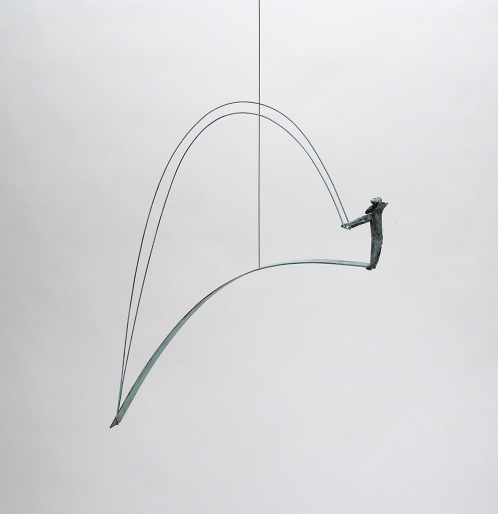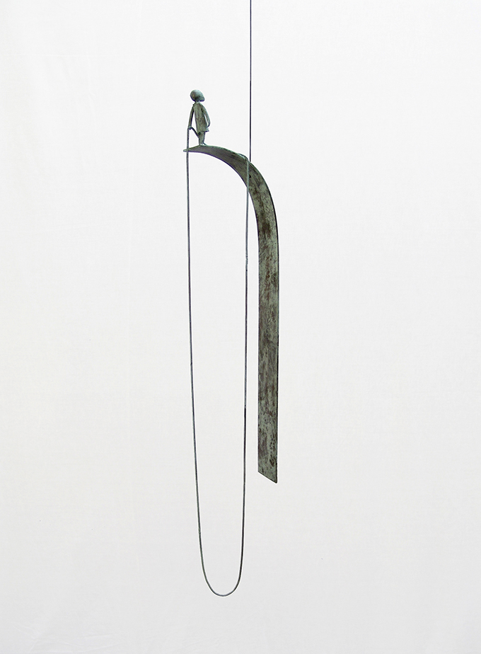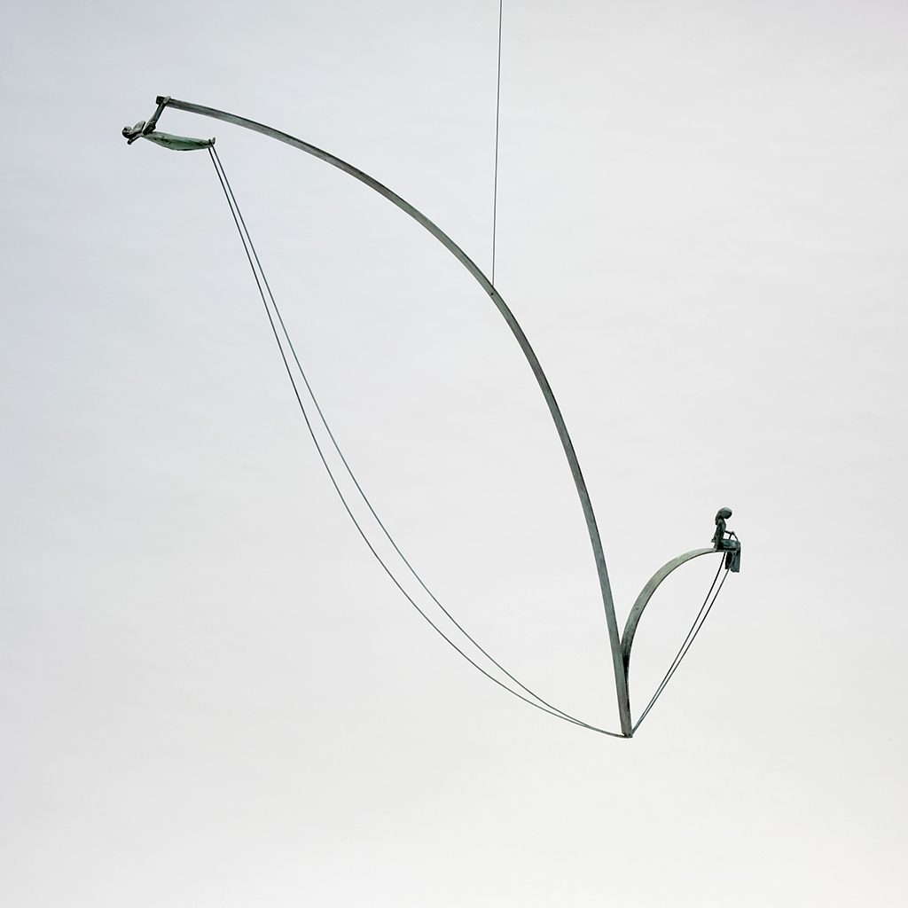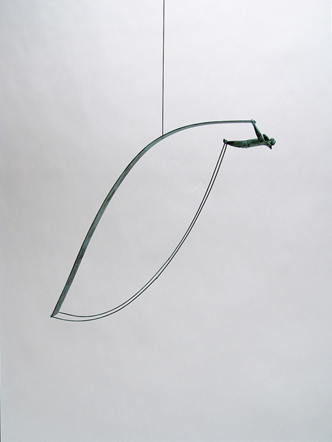 Sculptures suspendues en bronze et métaux cuivreux patine vert de gris, pièces originales reproduites en 8 exemplaires.