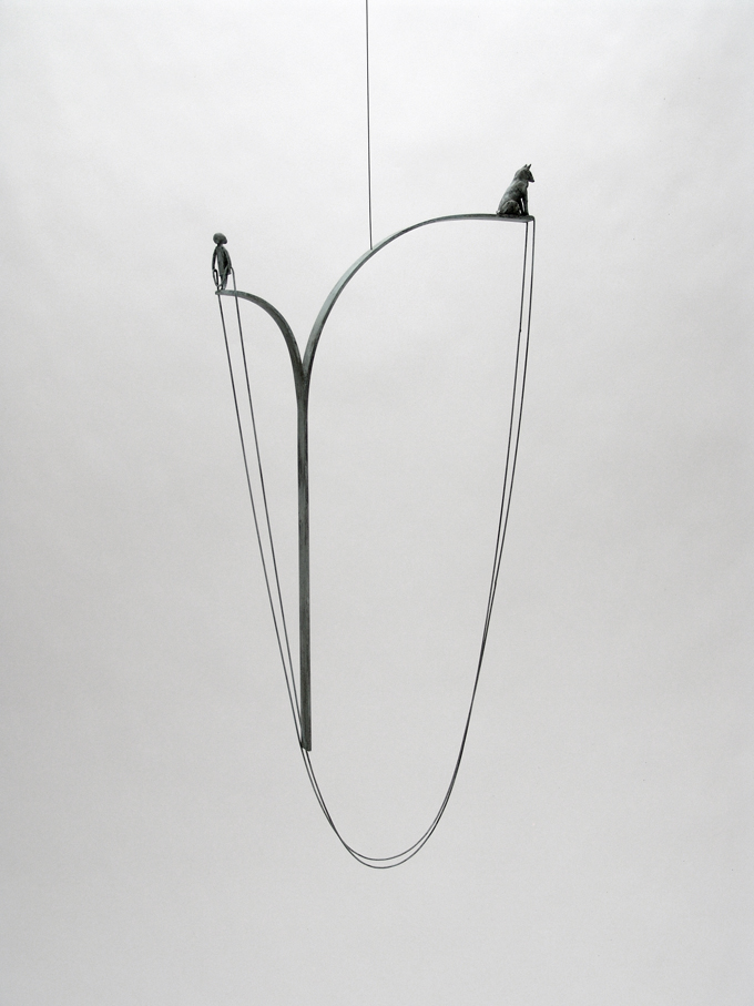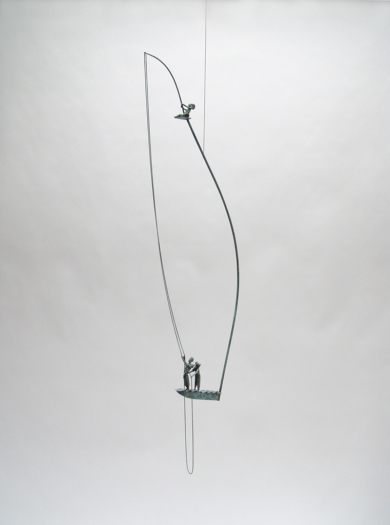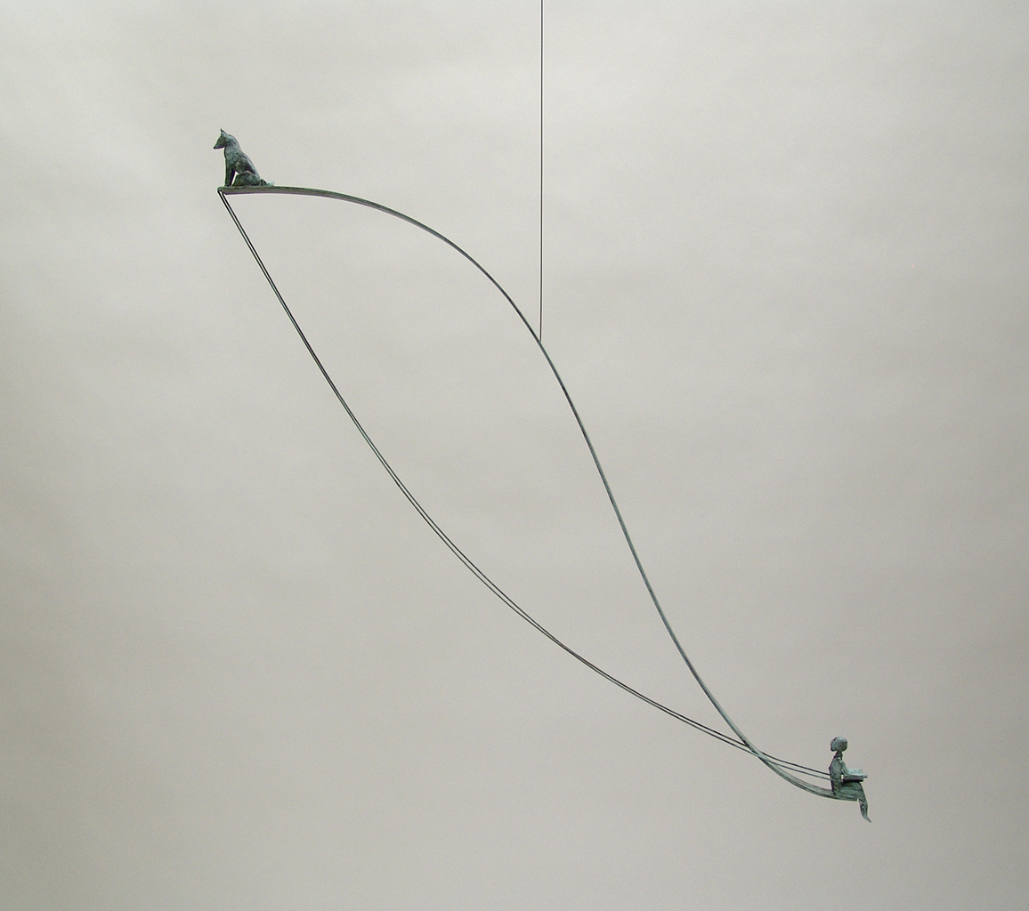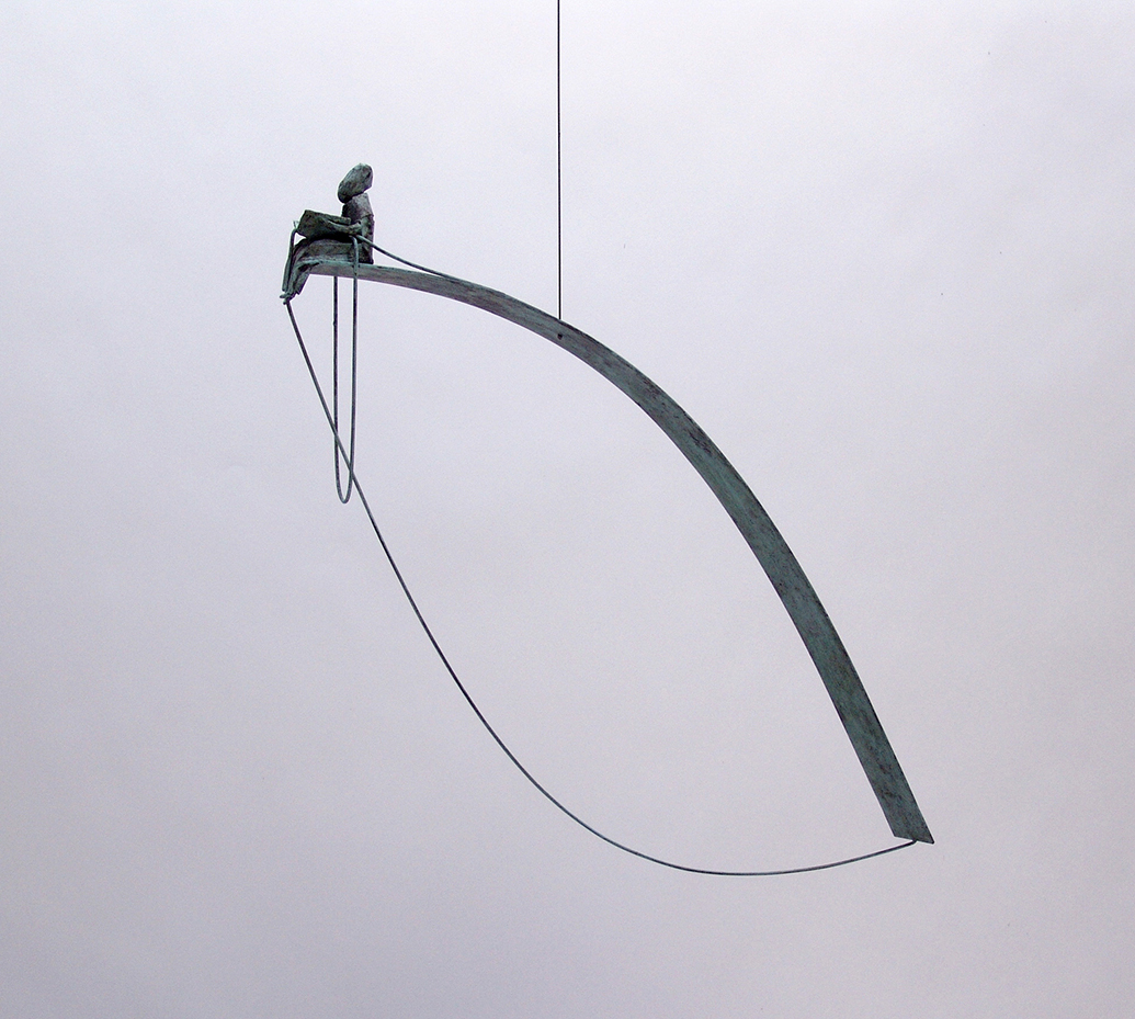 Sculptures suspendues en bronze et métaux cuivreux patine vert de gris, pièces originales reproduites en 8 exemplaires.