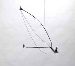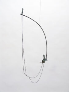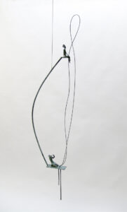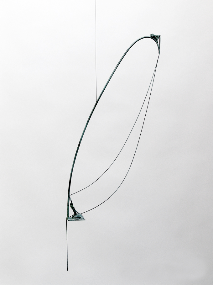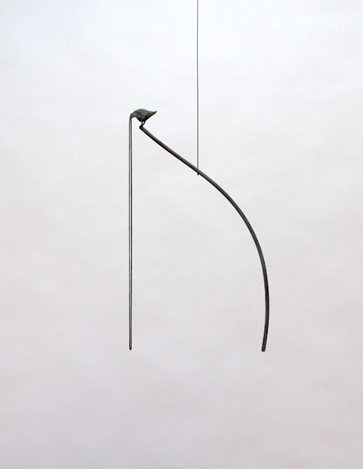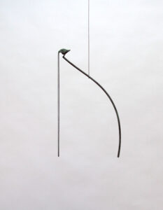 Sculptures suspendues en bronze et métaux cuivreux patine vert de gris, pièces originales reproduites en 8 exemplaires.