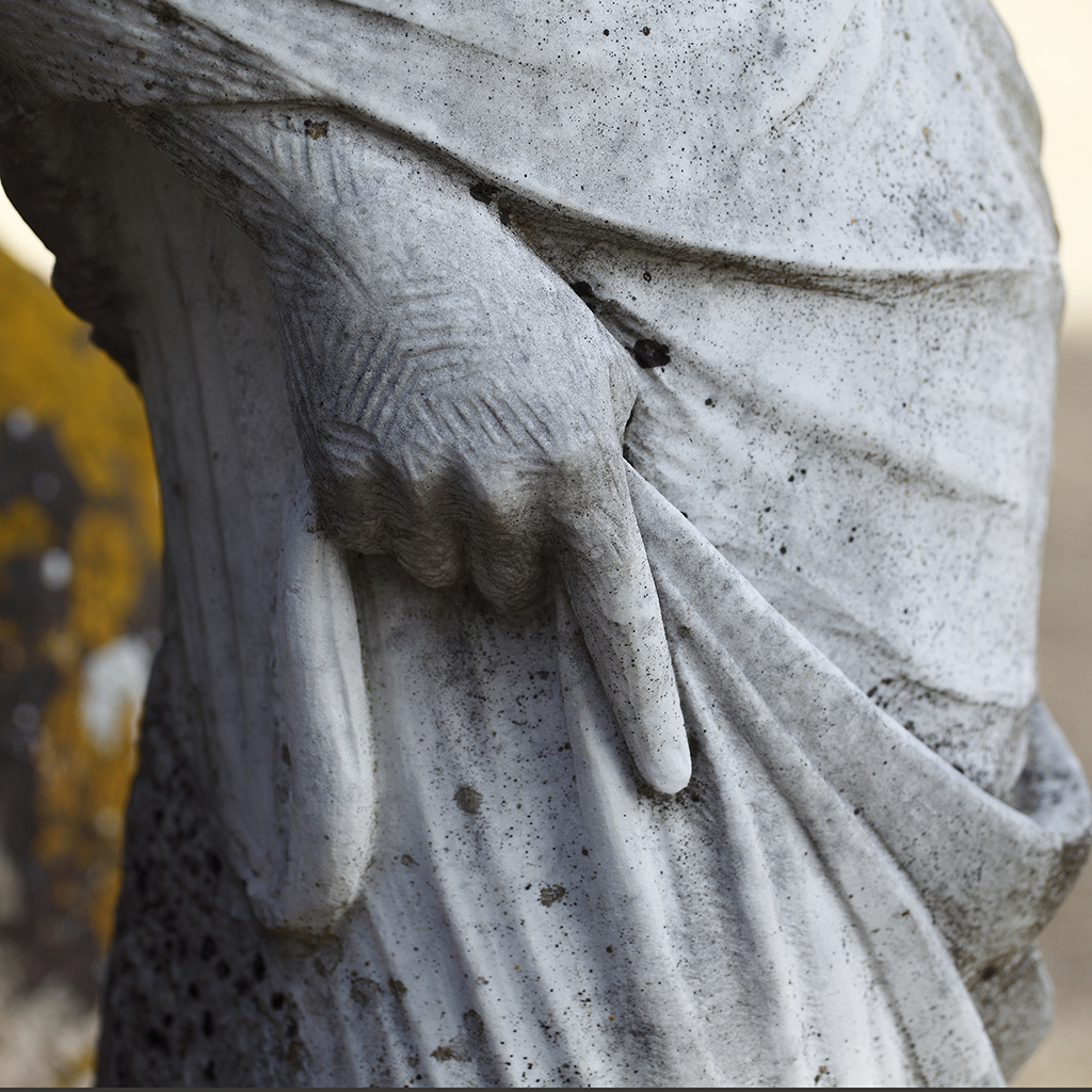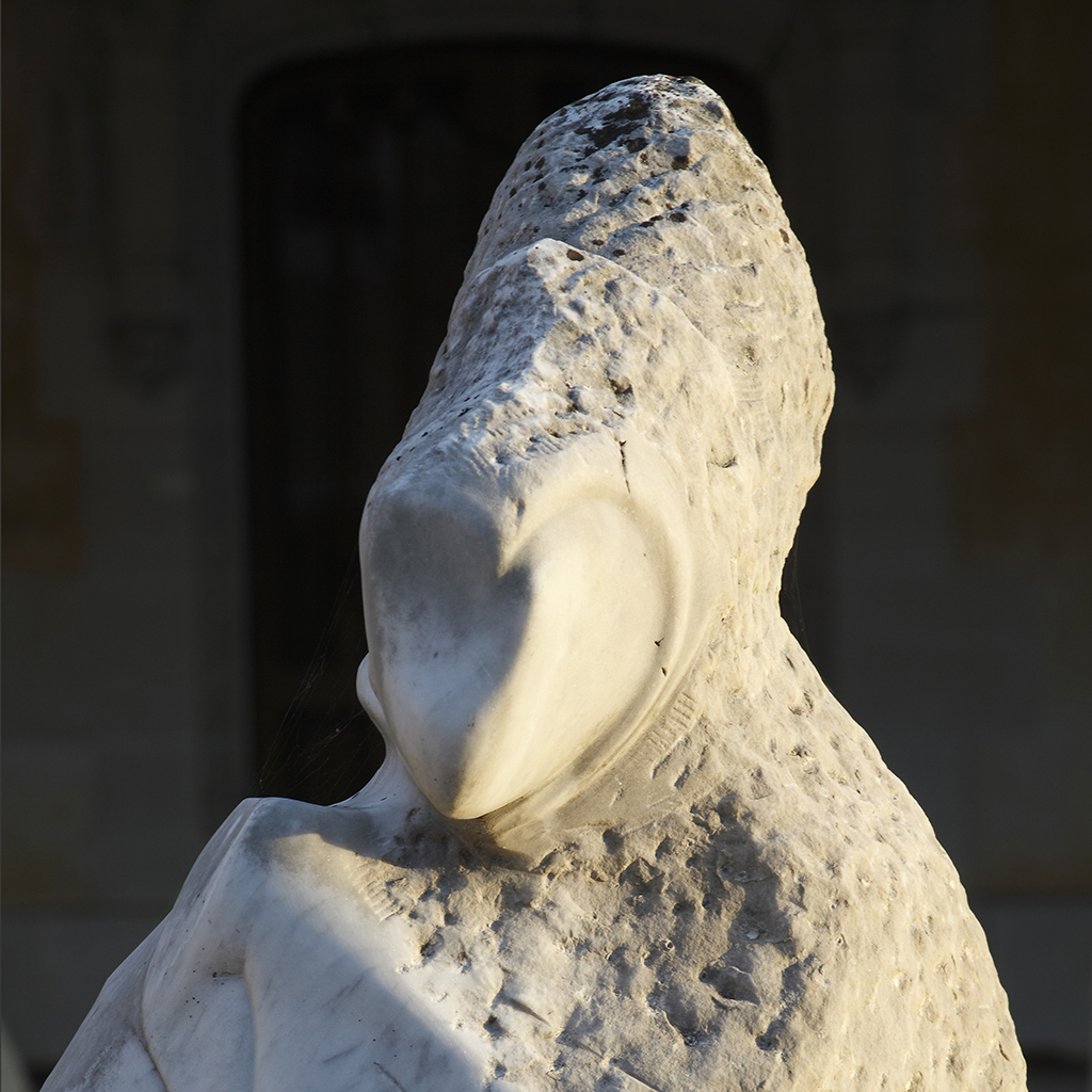 1- PETIT PATRIARCHE (marbre blanc, H=105cm, 1981); 2 et 3 – HOMME-FAUTEUIL (marbre blanc, H=110cm, 1982); 4 et 5 – GRAND PATRIARCHE (marbre blanc, H hors socle=140cm, 1987); 6 et 7 -VESTALE (marbre blanc, H=163cm, 1984); 8 – Au premier plan GRAND PATRIARCHE, au deuxième plan VESTALE.